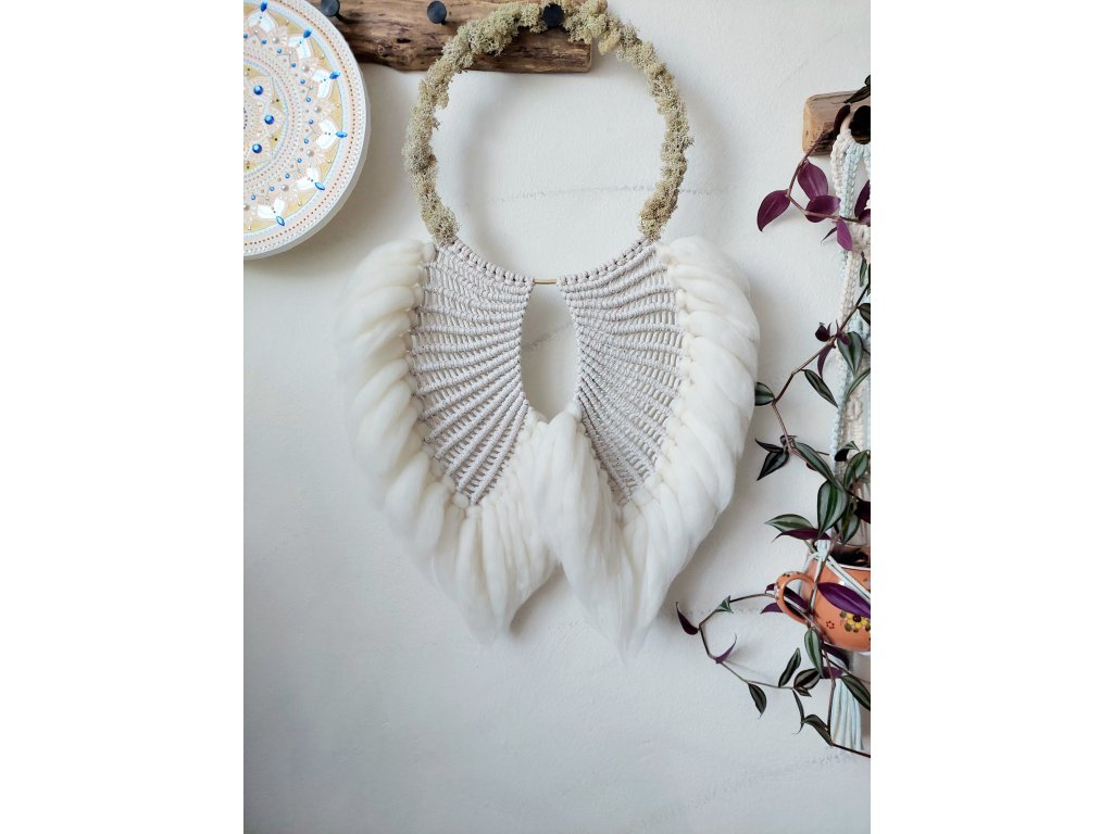 Tato velká nástěnná ANDĚLSKÁ křídla jsou tvořena s úmyslem přinést do prostoru silnou ochranu – ať už domova, rodiny, nebo celé komunity. Křídla jsou tradičním symbolem čistoty, bezpečí, svobody a propojení s vyššími ochrannými silami, zejména s andělskými bytostmi.