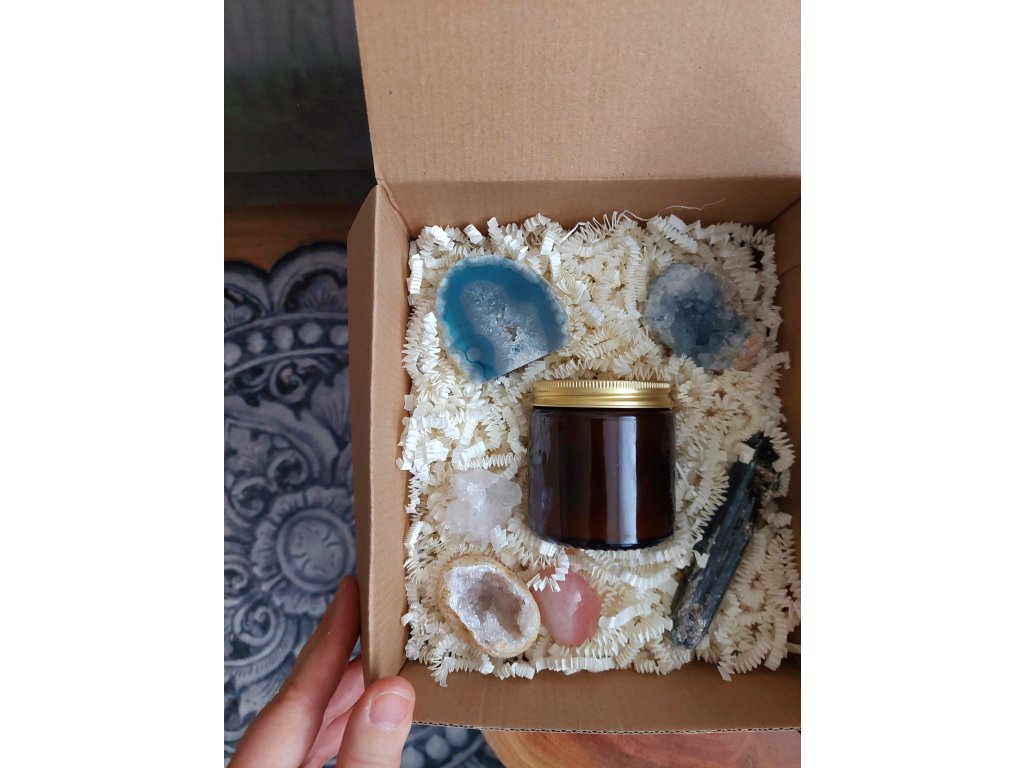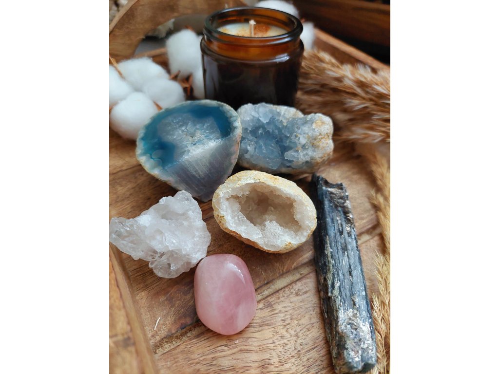 Drahé kameny - růženín, křišťál (geoda a drúza), modrý achát, celestin, kyanit