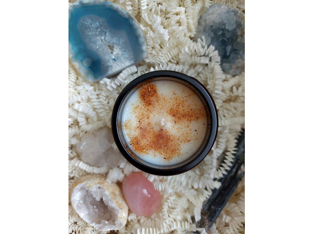 Vůně svíčky je něžná, uklidňující a povzbudivá – propojuje bylinné, květinové i citrusové tóny. Svíčka pomůže při meditacích, rituálech, odpočinku i při práci s emocemi. Tmavá elegantní sklenice se zlatým víčkem chrání vůni i vosk a dodává svíčce luxusní vzhled.
