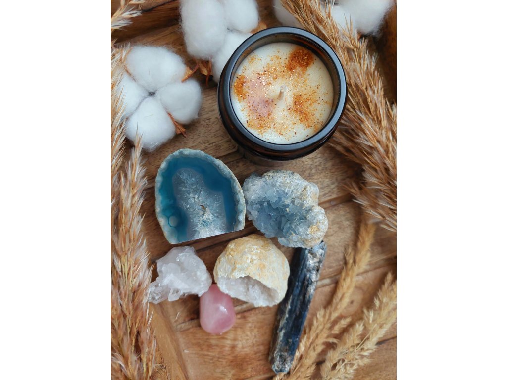 Aromasvíčka s ANDĚLSKOU ENERGIÍ 120 ml – sójová svíčka s drahými kameny