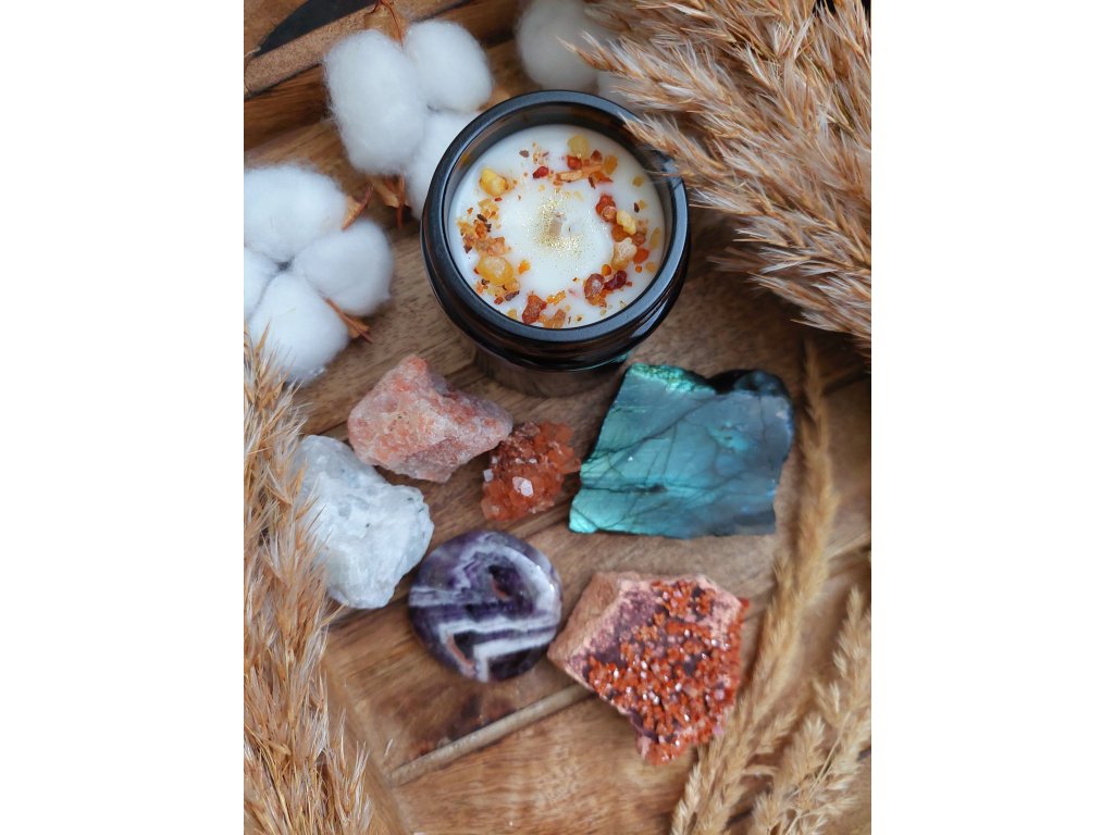 Aromasvíčka s DRAČÍ ENERGIÍ 120 ml – sójová svíčka s drahými kameny