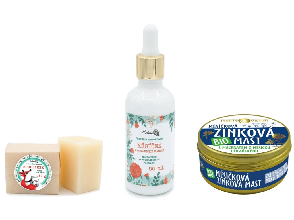 BIO Sada pro citlivou pleť – měsíčkový olej, zinková mast a ovesné mýdlo