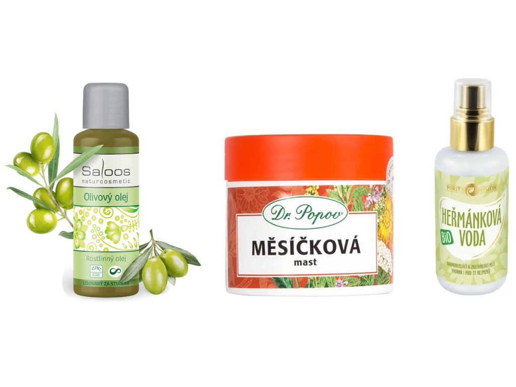 BIO Sada pro normální pleť – olivový olej, měsíčková mast a heřmánková voda