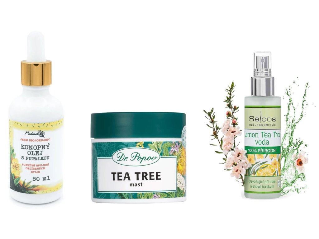 BIO Sada pro problematickou pleť – konopný olej s pupalkou, tea tree mast a pleťová voda lemon tea tree