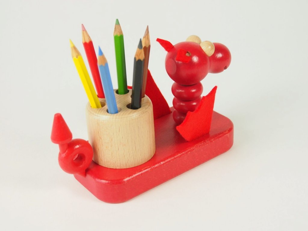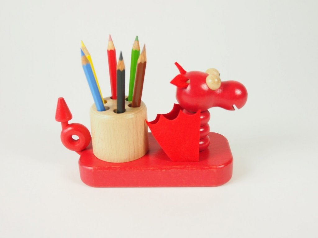 ČERVENÝ DRAK – dřevěný stojánek s pastelkami