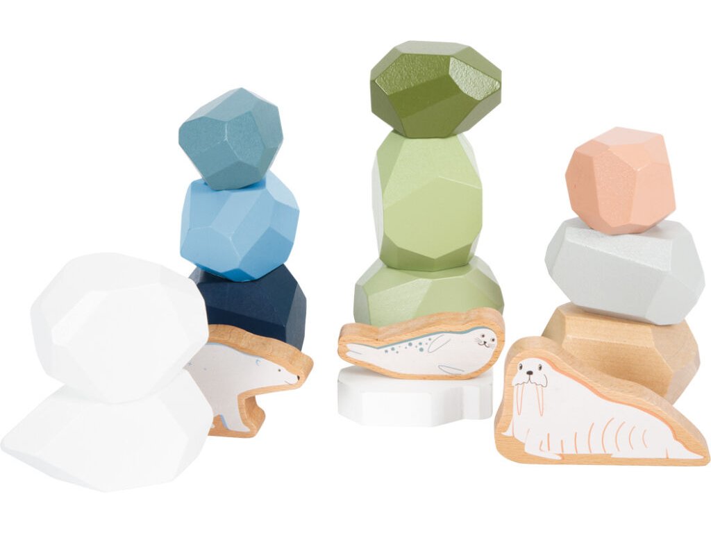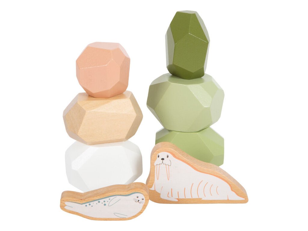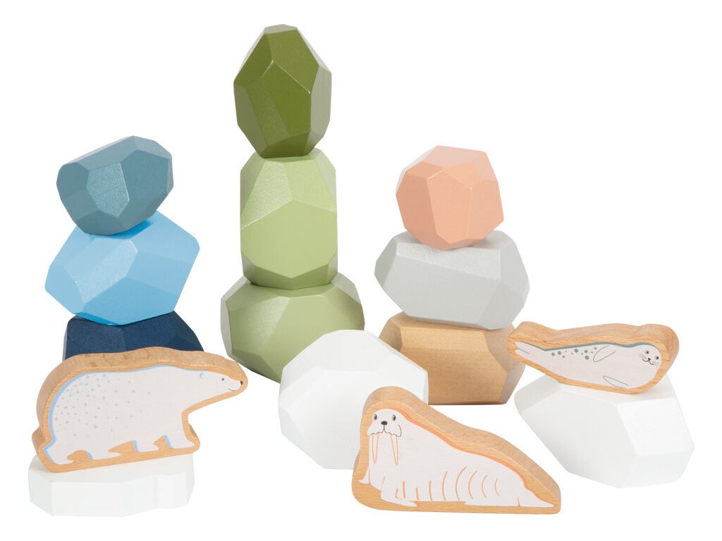 Dřevěné balanční kameny Arctic přinášejí klidnou, soustředěnou a zároveň velmi kreativní hru. Sada obsahuje jedenáct balančních kamenů různých tvarů, velikostí a barev, které mohou děti skládat, třídit, počítat nebo kombinovat se zvířátky z arktického světa.
