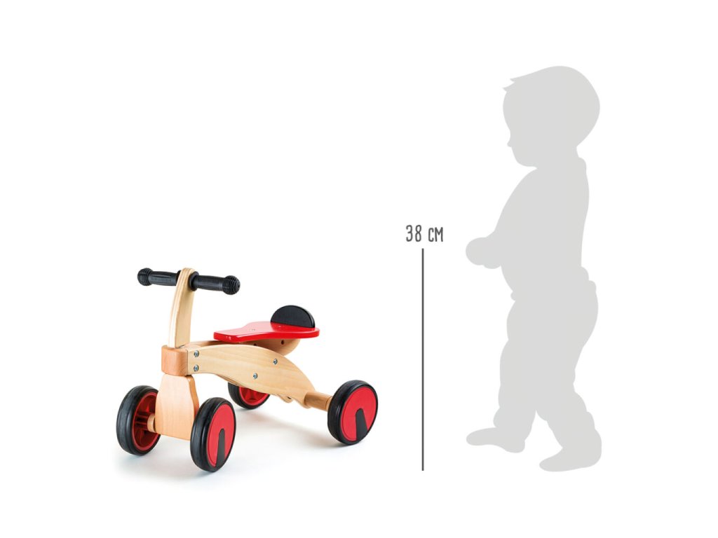 Dřevěné odrážedlo Závodník je navrženo jako první bezpečné vozítko pro malé děti, které se chtějí pohybovat samostatně. Pevná dřevěná konstrukce zajišťuje vysokou stabilitu a dlouhou životnost. Pogumovaná kola umožňují tichý a plynulý pohyb i na pevném povrchu, zatímco gumové rukojeti poskytují dětem jistý a pohodlný úchop. Nízká výška sedu usnadňuje nasedání i sesedání a podporuje přirozený rozvoj rovnováhy a koordinace. Odrážedlo je vyrobeno s důrazem na kvalitu zpracování a bezpečnost, aby dětem přinášelo radost i rodičům klid.