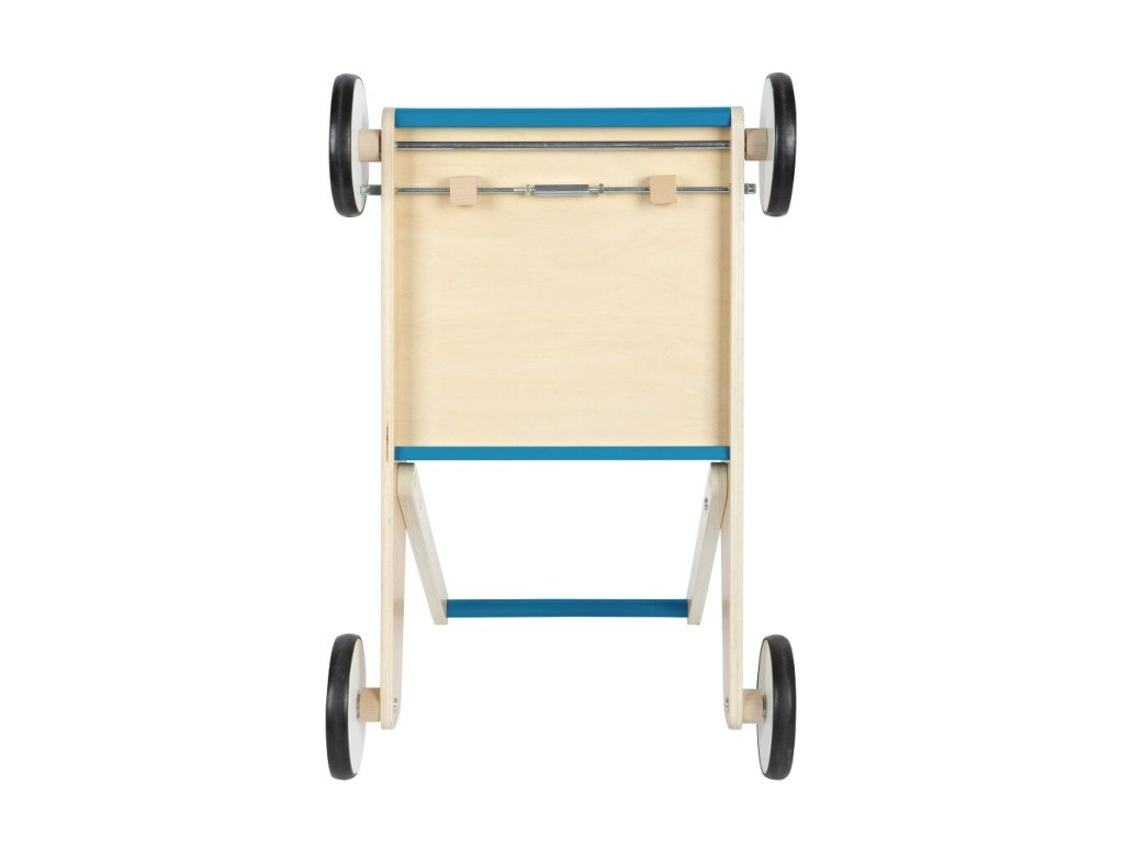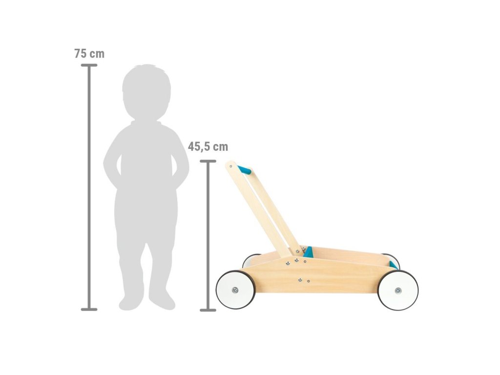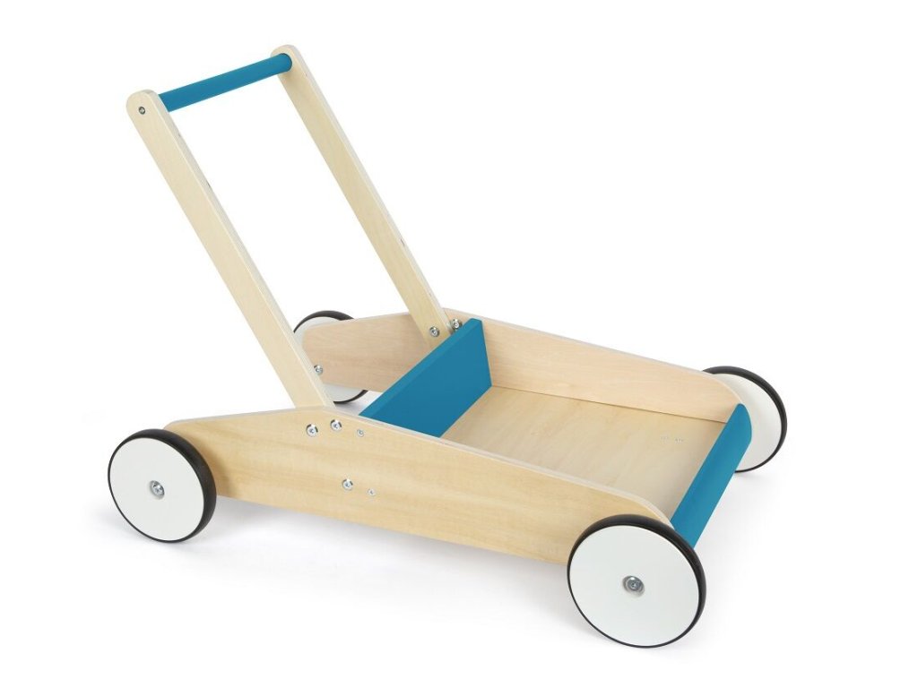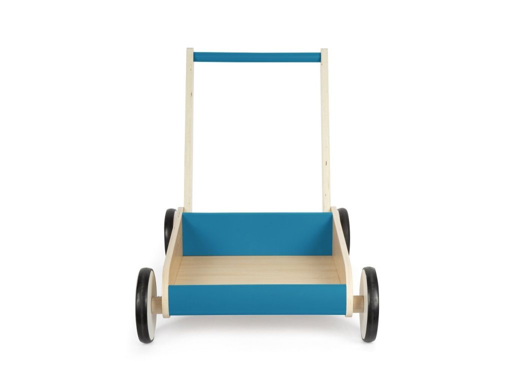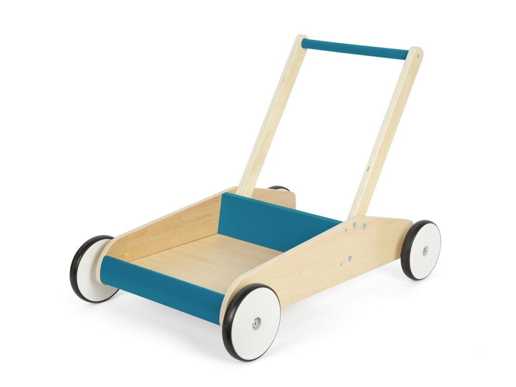 Dětské chodítko v modré barvě je ideálním společníkem pro první krůčky i každodenní hraní. Spojuje funkčnost, bezpečnost a atraktivní design v kombinaci přírodního dřeva a modré barvy, díky čemuž se stane výrazným prvkem každého dětského pokoje. Chodítko je vyrobeno z vysoce kvalitního laminovaného dřeva a disponuje robustní a stabilní konstrukcí, která poskytuje dětem jistotu při chůzi. Integrovaný brzdný systém umožňuje přizpůsobit rychlost pohybu schopnostem dítěte a zvyšuje bezpečnost při používání. Pogumovaná kolečka zajišťují tichý a plynulý chod na pevných podlahách. Praktickým prvkem je velká úložná plocha, kam si děti mohou uložit své oblíbené hračky a vzít je s sebou na procházku. Výškově nastavitelná rukojeť ve dvou úrovních umožňuje, aby chodítko rostlo spolu s dítětem. Zaoblené hrany přispívají k maximální bezpečnosti při každodenním používání.