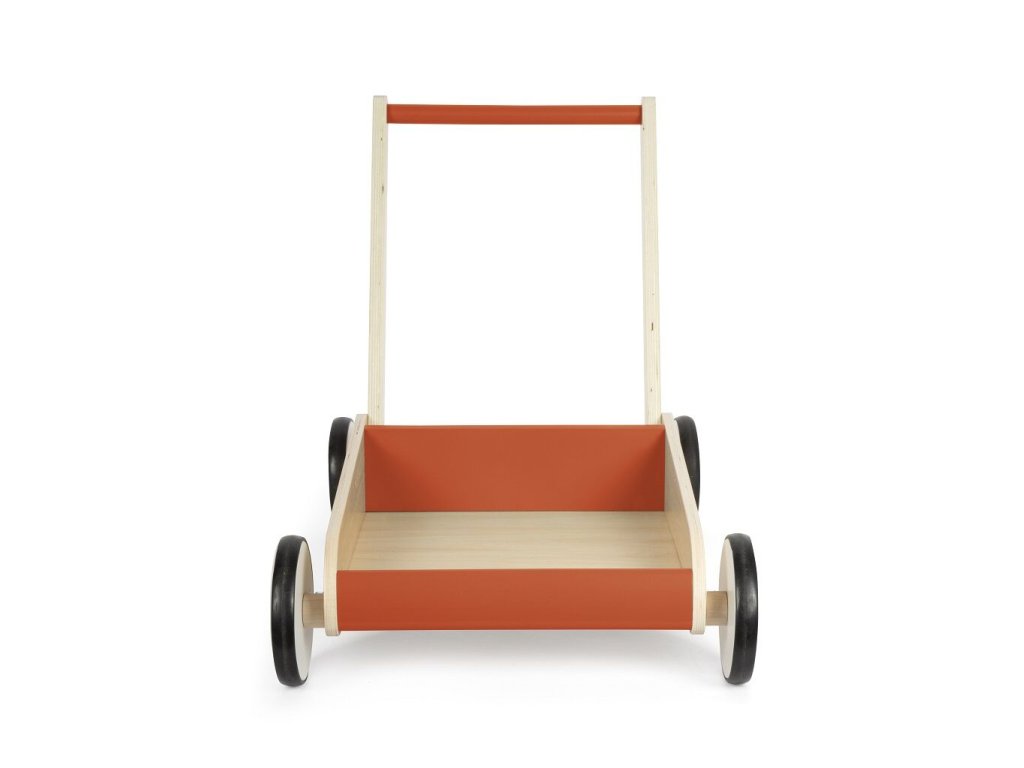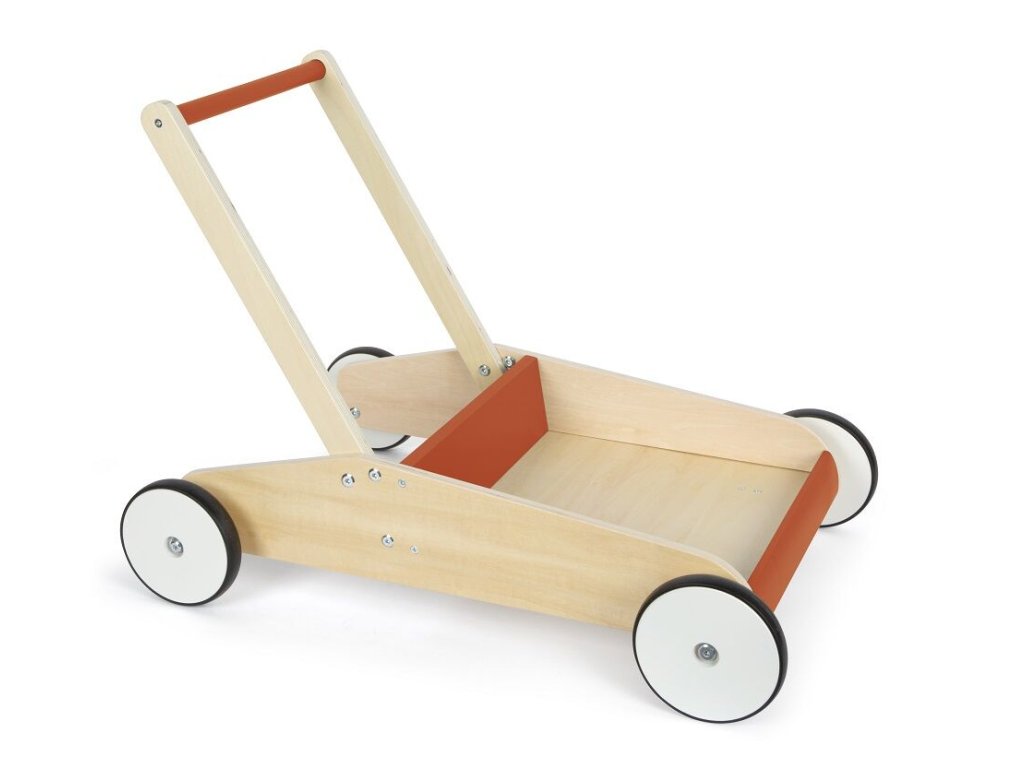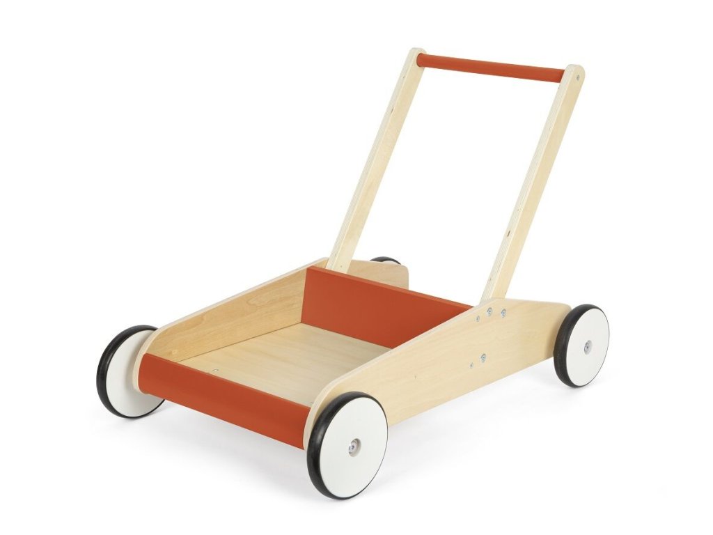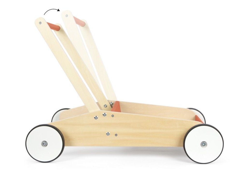 Dětské chodítko v červené barvě je ideálním společníkem pro první krůčky i každodenní hraní. Spojuje funkčnost, bezpečnost a atraktivní design v kombinaci přírodního dřeva a červené barvy, díky čemuž se stane výrazným prvkem každého dětského pokoje. Chodítko je vyrobeno z vysoce kvalitního laminovaného dřeva a disponuje robustní a stabilní konstrukcí, která poskytuje dětem jistotu při chůzi. Integrovaný brzdný systém umožňuje přizpůsobit rychlost pohybu schopnostem dítěte a zvyšuje bezpečnost při používání. Pogumovaná kolečka zajišťují tichý a plynulý chod na pevných podlahách. Praktickým prvkem je velká úložná plocha, kam si děti mohou uložit své oblíbené hračky a vzít je s sebou na procházku. Výškově nastavitelná rukojeť ve dvou úrovních umožňuje, aby chodítko rostlo spolu s dítětem. Zaoblené hrany přispívají k maximální bezpečnosti při každodenním používání.