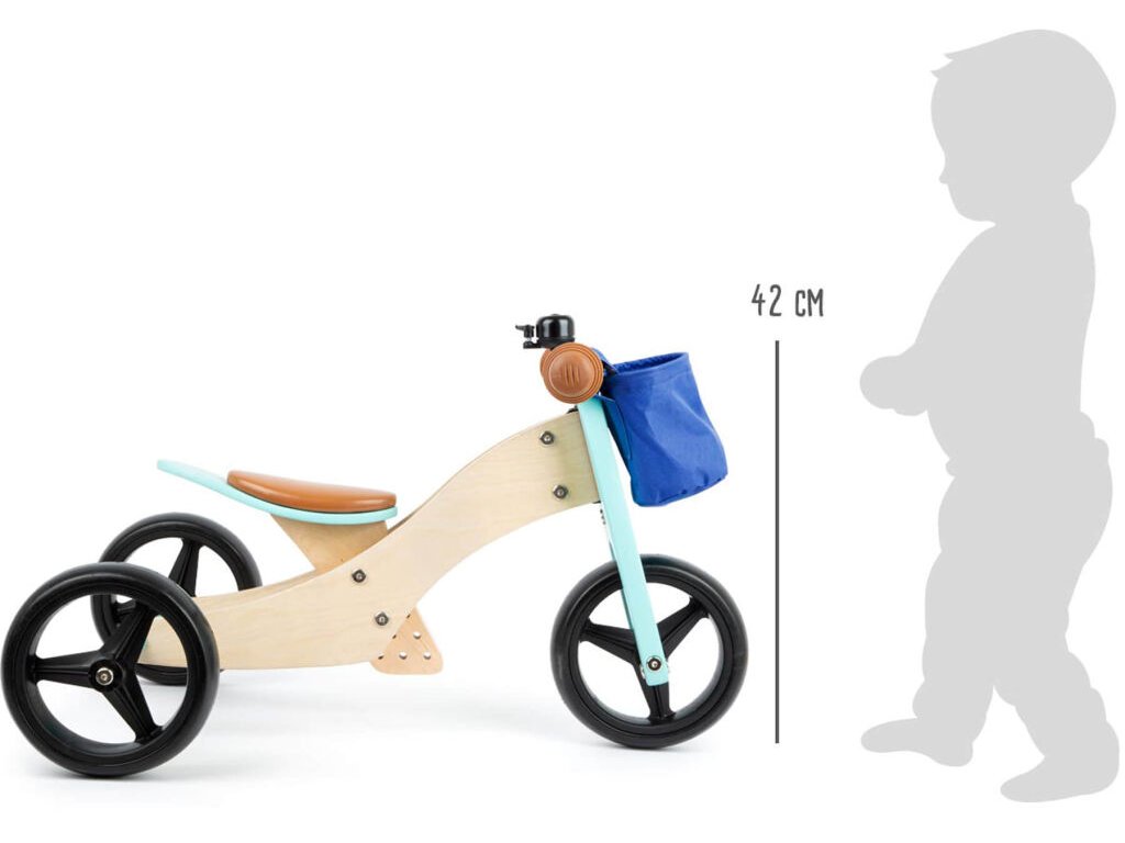 Odrážedlo 2v1 je navrženo tak, aby rostlo spolu s dítětem. Pro začátečníky slouží jako stabilní tříkolové odrážedlo, které poskytuje vyšší bezpečnost při prvních jízdách. Jakmile dítě získá jistotu, lze odrážedlo snadno přestavět na dvoukolovou balanční verzi. Sedadlo je nastavitelné do tří výšek, což zajišťuje pohodlné používání po delší dobu. Pro zvýšení bezpečnosti jsou řídítka vybavena tlumičem řízení a chrániči. Zvonek, odnímatelný košík, gumové rukojeti, nezničitelné EVA pneumatiky a měkké sedadlo zajišťují komfortní a zábavnou jízdu.