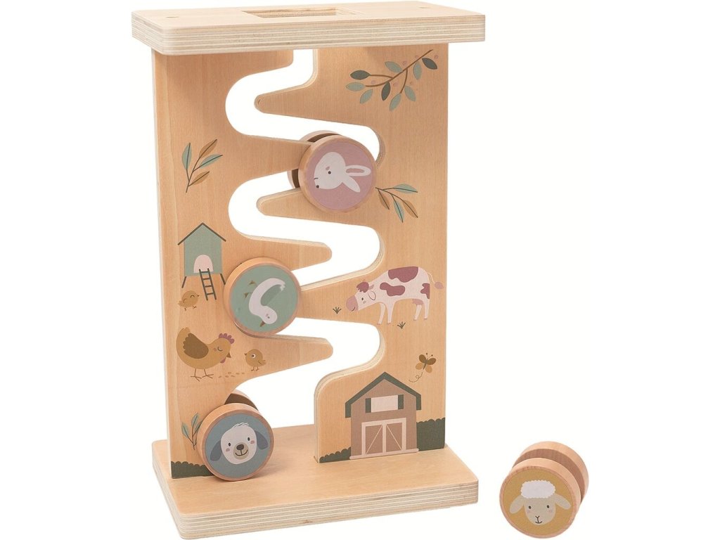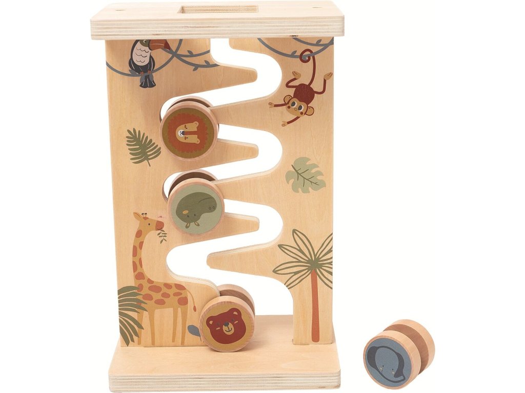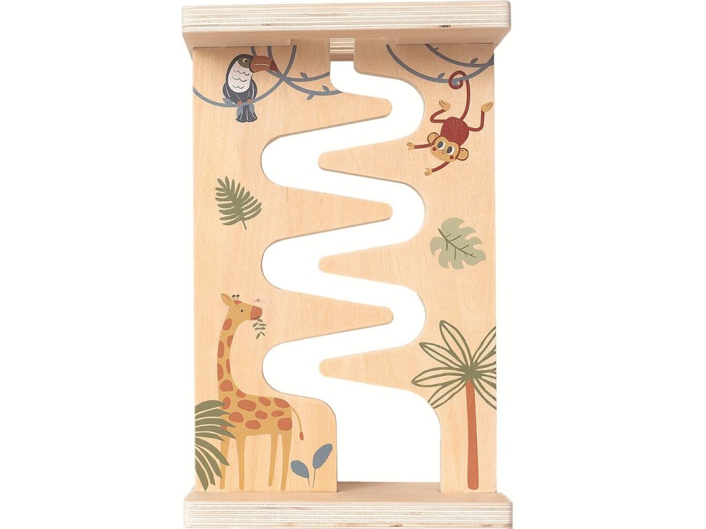 Labyrint se zvířátky je jednoduchá a přitom velmi zábavná motorická hračka pro malé objevitele. Děti vedou dřevěná kolečka s motivy zvířátek vyřezanou cestičkou dolů po stojánku a přirozeně si tak procvičují jemnou motoriku, koordinaci pohybů a logické uvažování. Přírodní vzhled dřeva doplněný veselými ilustracemi zvířat a přírody podporuje zájem o hru a soustředění.