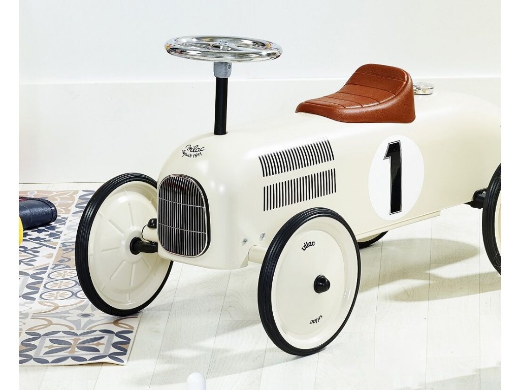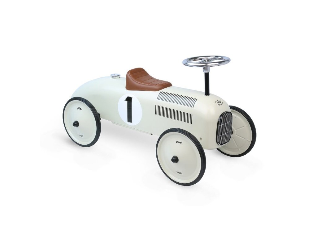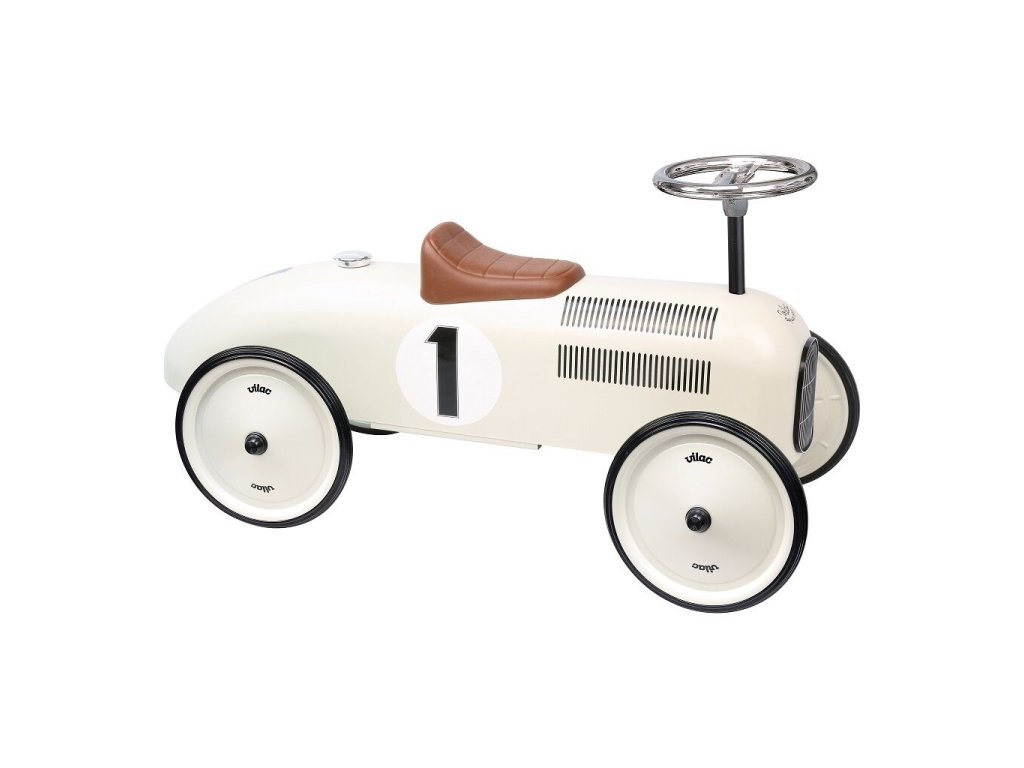 KOVOVÉ ODRÁŽEDLO závodní auto do 20 kg - krémové