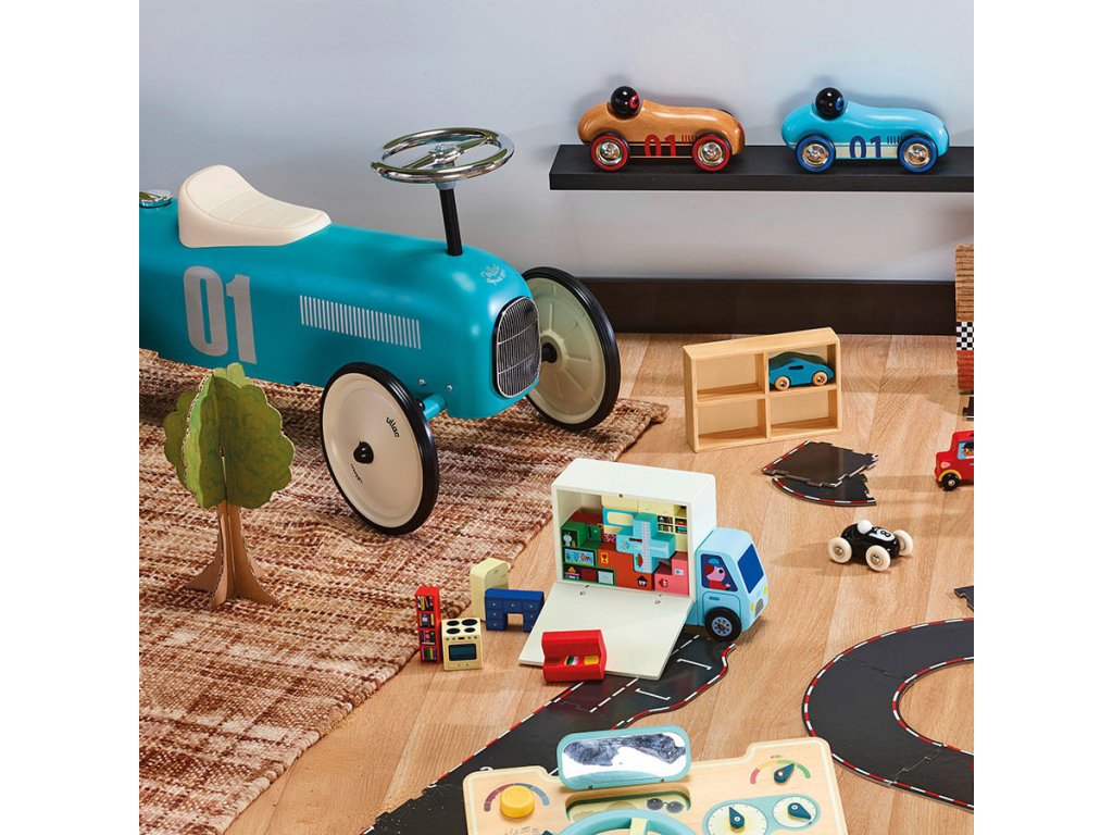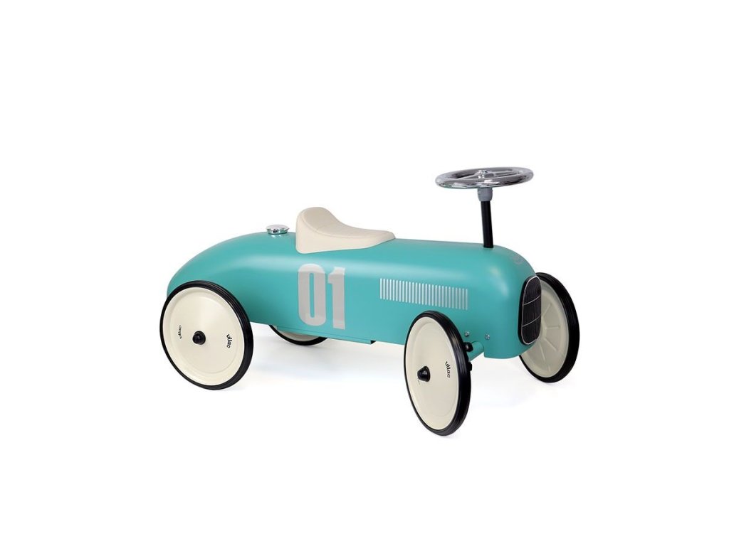 Stylové světle modré odrážedlo zaujme na první pohled svým originálním závodním designem a světle modrou metalickou barvou. Celokovová konstrukce zajišťuje vysokou stabilitu a dlouhou životnost. Volant ovládá zatáčení předních kol, což dětem umožňuje přirozený pohyb a rozvoj koordinace. Pogumovaná kola zajišťují tichý a plynulý chod i na pevném povrchu. Hnědé sedadlo z plastu je tvarované pro pohodlné sezení při jízdě i hře.