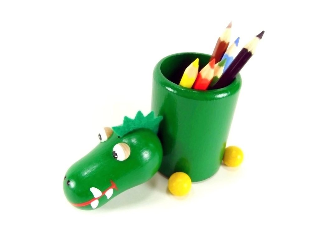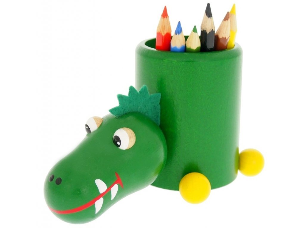 KROKODÝL THEO – dřevěný kalíšek s pastelkami