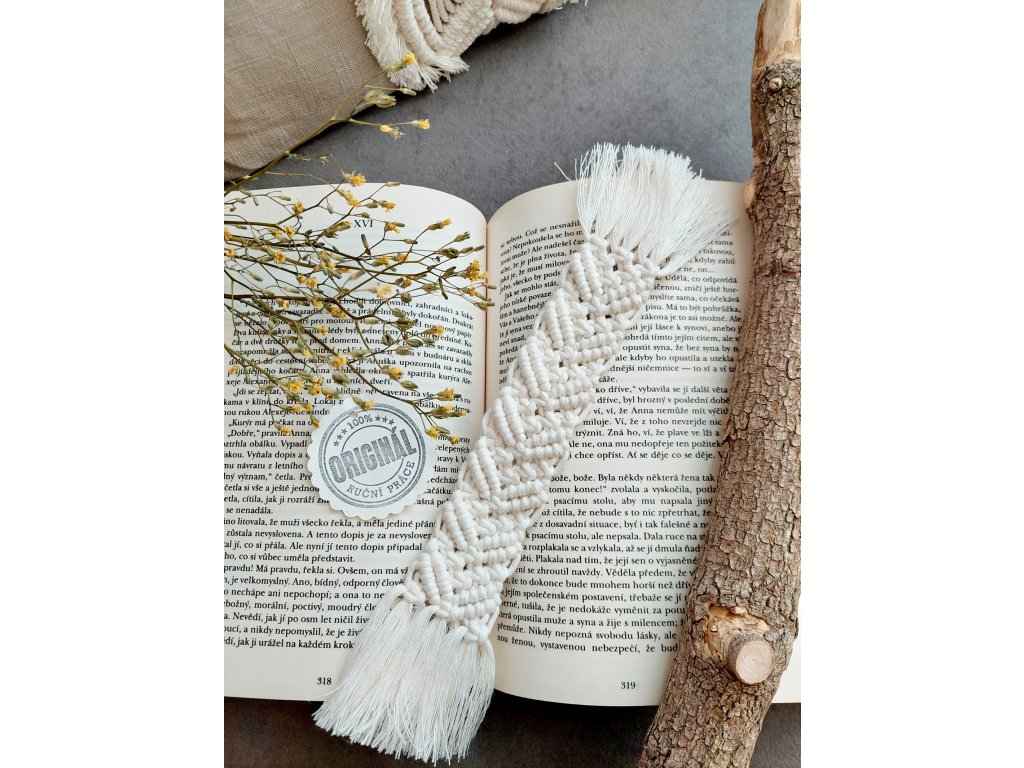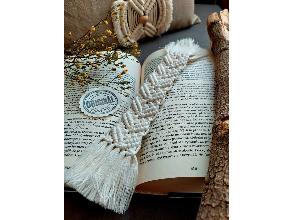 Macramé záložka „PERSKÁ“ je elegantní, ručně tvořená záložka vhodná do knih, zápisníků i diářů. Je vyrobena ze 100% eco bavlny (2 mm) ve světlém natural odstínu, který může mít různé podtóny — od Nude, přes Natural, až po jemný Moonlight. Díky tomu působí velmi jemně, harmonicky a snadno ladí s jakýmkoli stylem.