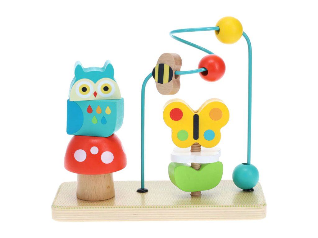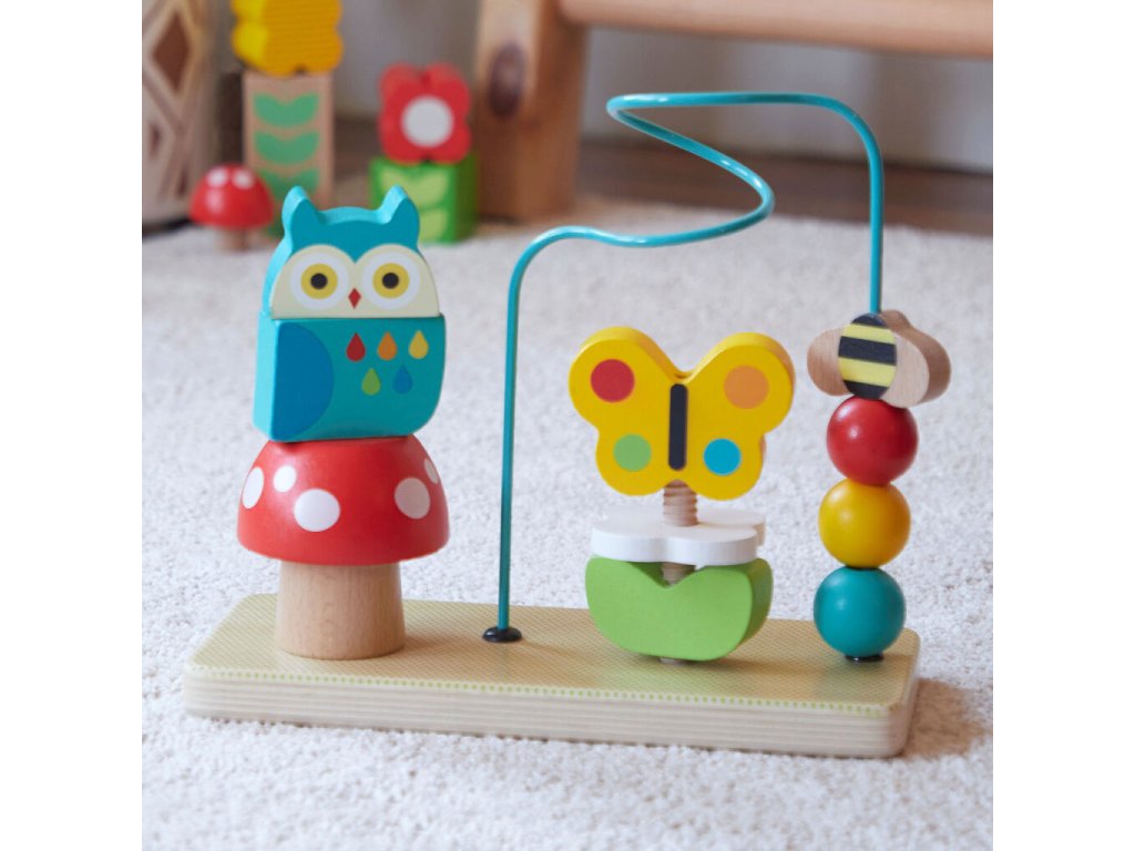 Labyrint Trio nabízí dětem tři různé způsoby hry – nasazování, posouvání a otáčení jedinečně zpracovaných dílků se zvířátky. Jednotící přírodní motiv podporuje dětskou fantazii a poznávání světa kolem sebe, kdy se včelka s pomocí představivosti vznáší nad květinou a květ se otáčením promění v motýla. Hračka je kompaktní, robustní a velmi odolná, vyrobená ze 100% FSC certifikovaného dřeva, což zajišťuje dlouhou životnost, bezpečnost a šetrnost k přírodě.