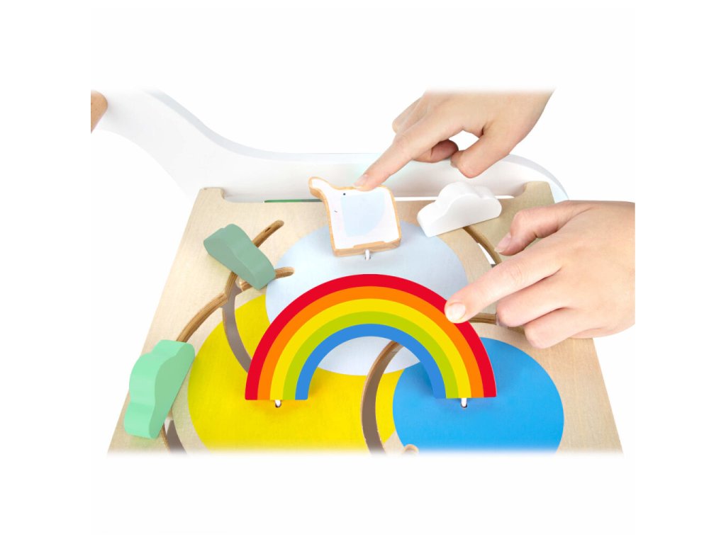 Dřevěné chodítko Slon je hravým a praktickým společníkem pro první dětské krůčky i každodenní objevování. Multifunkční chodítko nabízí zábavu na všech pěti stranách a propojuje pohyb s učením prostřednictvím hry. Děti si mohou vyzkoušet duhový korálkový labyrint, vkládačku s různými tvary, kreslení na tabulku, otáčení barevných kostek i manipulaci s odklápěcími prvky. Horní deska s labyrintem je odklápěcí a vybavená bezpečnostními výřezy, které zabraňují skřípnutí prstíků. Po otevření se objeví prostorný úložný prostor ideální na hračky nebo plyšové kamarády. Pogumovaná kolečka zajišťují tichý a plynulý chod na všech typech povrchů a chodítko je vybaveno nastavitelnou brzdou, díky které lze přizpůsobit rychlost a stabilitu věku i schopnostem dítěte. Odolná dřevěná konstrukce zaručuje dlouhou životnost a bezpečné používání.