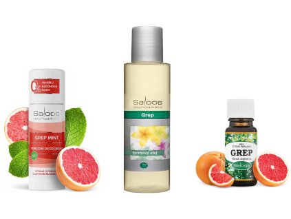 Energie a svěžest grepu v dárkovém balení. Přírodní deodorant grep–máta, sprchový olej s grepem a esenciální olej grep – citrusová péče, která probudí tělo i mysl.