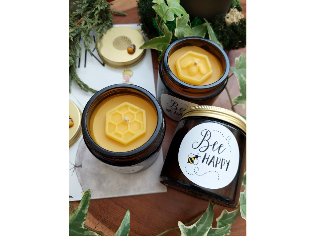 Přírodní medová svíčka BEE HAPPY 120 ml – z včelího vosk