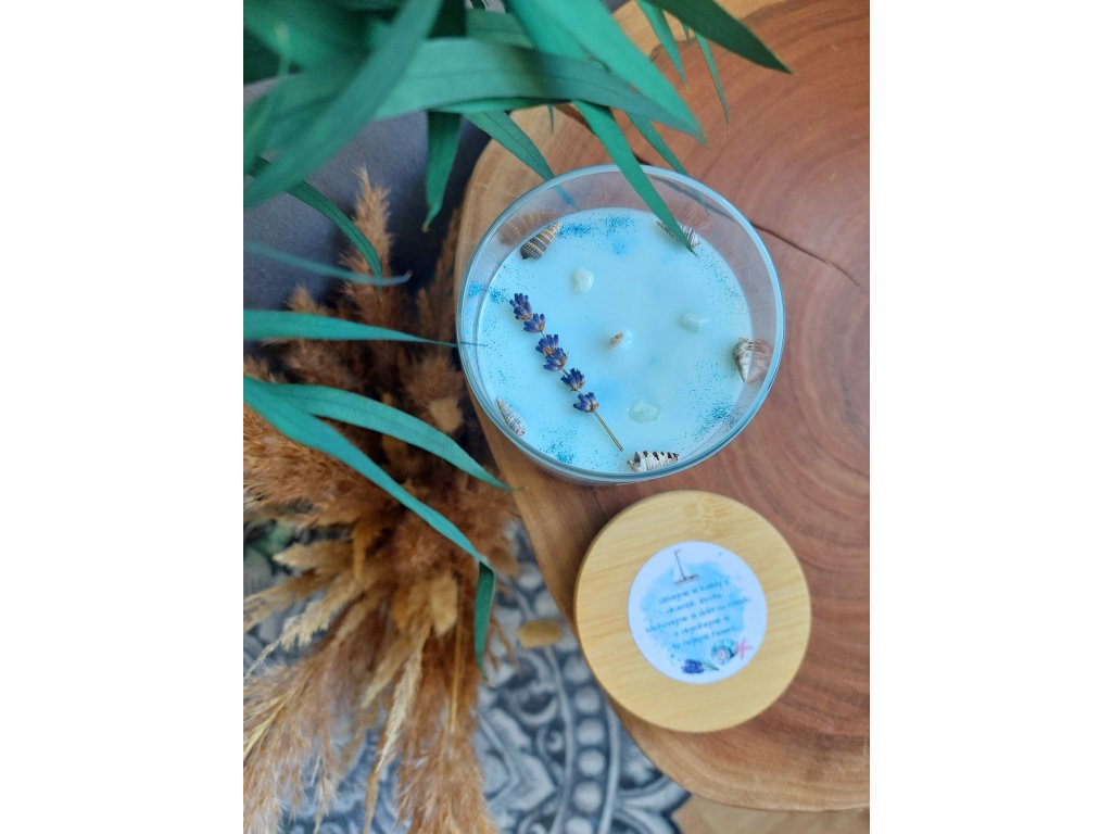 Přírodní svíčka „PRÁZDNINY U MOŘE“ je inspirovaná atmosférou letního odpočinku, dovolené u moře a radostných vzpomínek. Je ideální pro chvíle relaxu, plánování dalších cest nebo pro ty, kteří touží přenést do svého domova vůni léta a pocit volnosti.