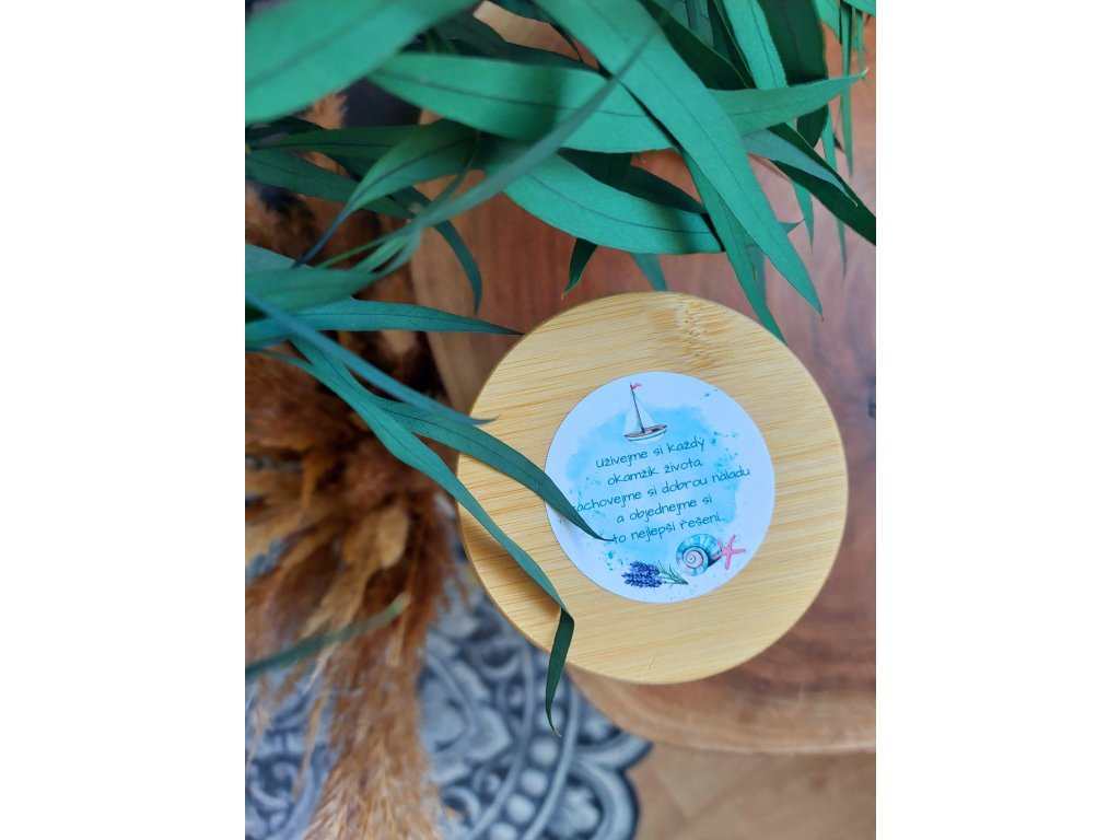 Svíčka je odlitá do elegantní borosilikátové sklenice s bambusovým víčkem a po vypálení může sloužit jako praktická nádoba do kuchyně. Vůně esenciálních olejů navíc působí jemně repelentně, takže se skvěle hodí i na letní večery.