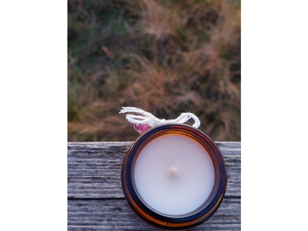 Součástí každé svíčky je ametrín – minerál spojující energii citrínu a ametystu. Podporuje odvahu, mentální jasnost a rozhodnost a zároveň chrání. napomáhá duchovnímu růstu.