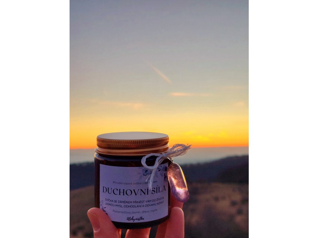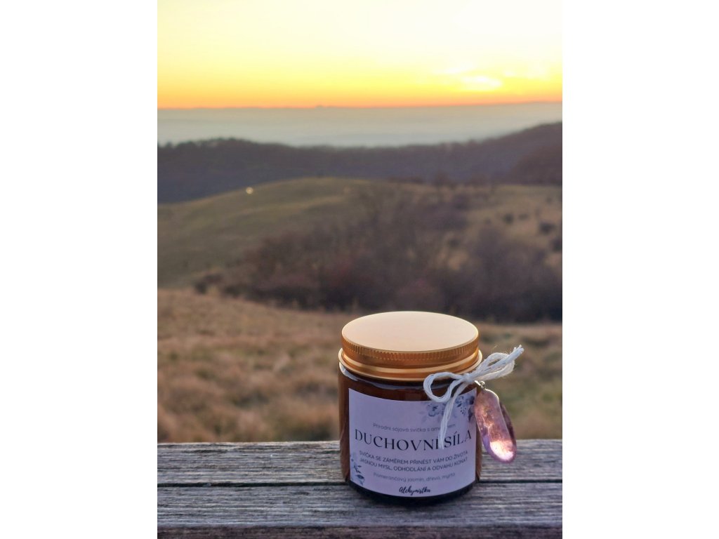 Přírodní svíčka se záměrem DUCHOVNÍ SÍLA – sójová svíčka s ametrínem
