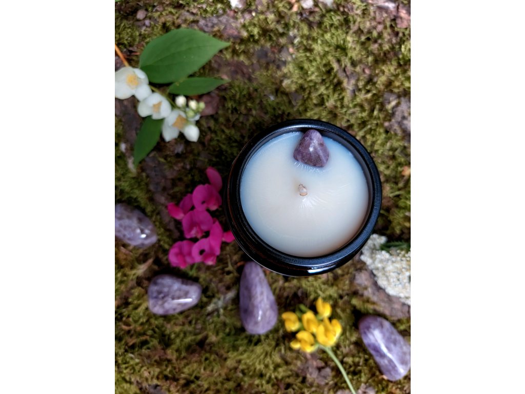 Přírodní svíčka se záměrem PROBUZENÁ – sójová svíčka s ametystem