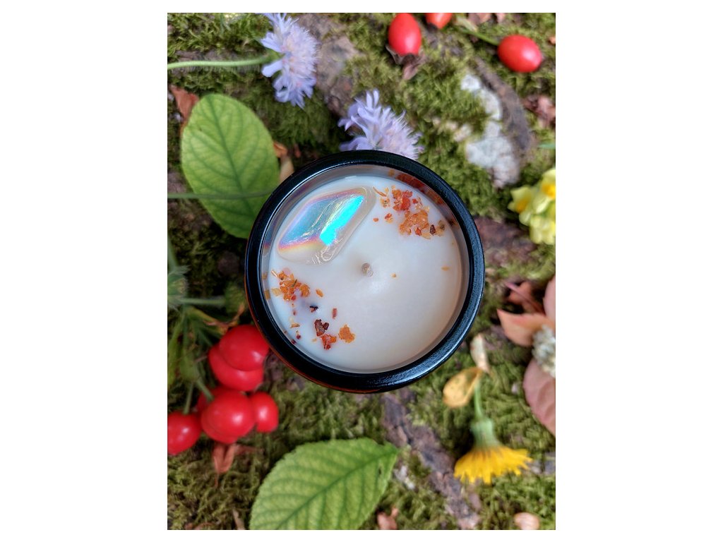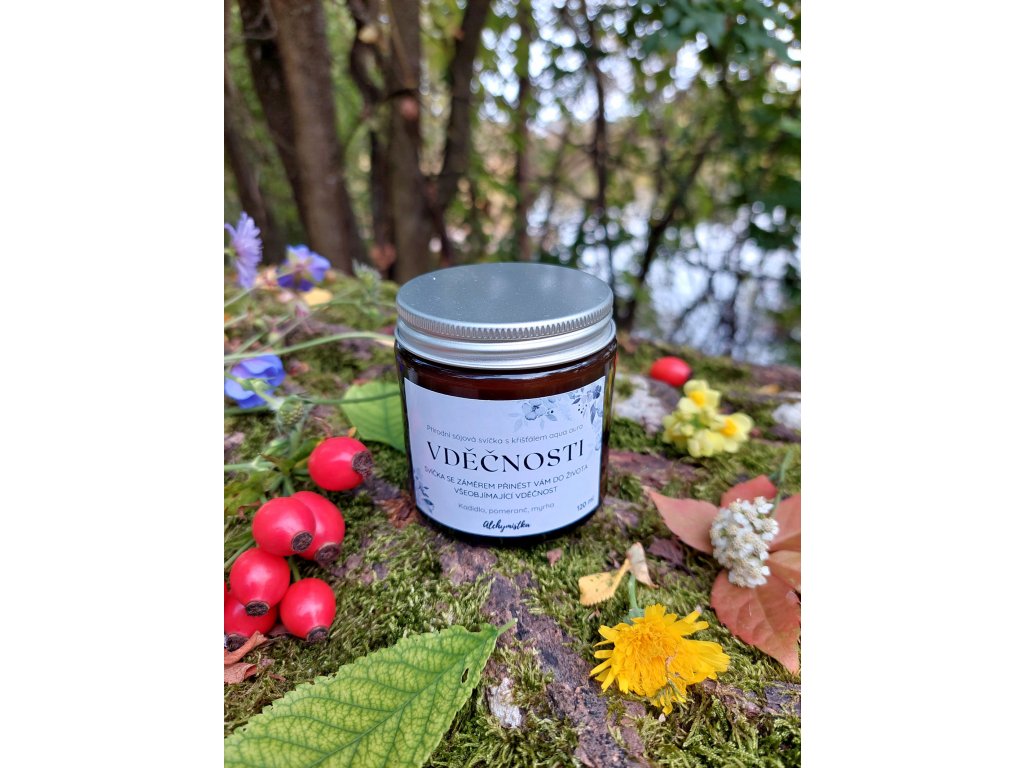 Přírodní svíčka se záměrem VDĚČNOSTI - sójová svíčka s křišťálem Aqua Aura