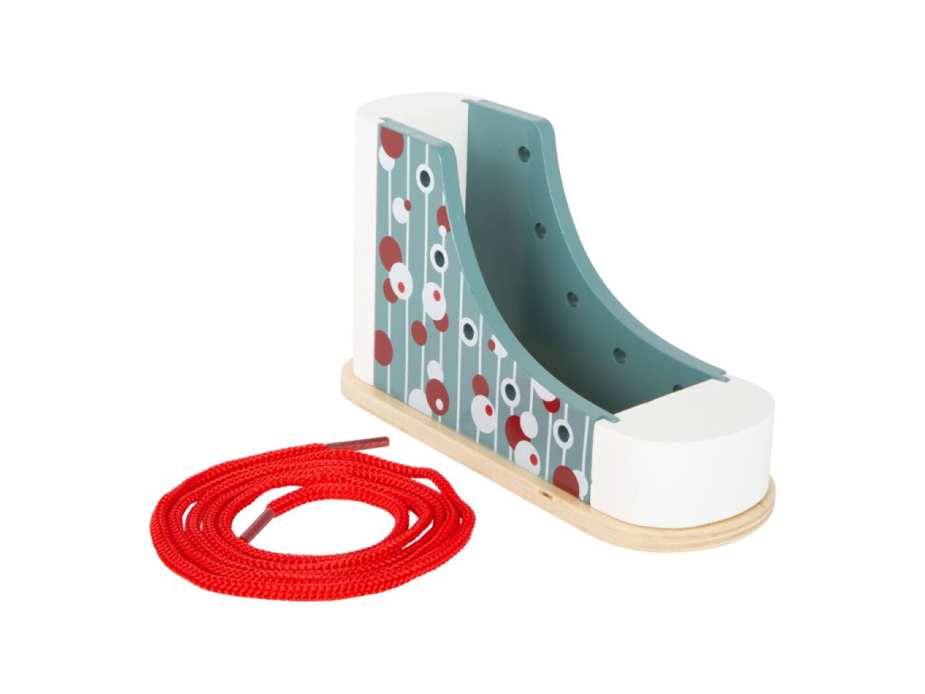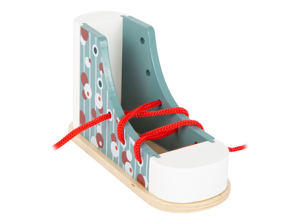 Aha, takže takhle se vážou boty! Tato stabilní dřevěná bota v moderním a veselém designu je ideální pomůckou pro děti, které se učí zavazovat tkaničky.