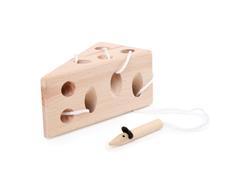 Kdo se to prokousal sýrem? Přeci malá myška! Tato provlékací hračka je vyrobena z přírodního lakovaného 100% FSC certifikovaného bukového dřeva a nabízí dětem jednoduchou, ale velmi účinnou formu motorického tréninku. Úkolem dítěte je provléknout myšku celým sýrem pomocí provázku. Při hře si děti procvičují prsty, koordinaci rukou a očí a učí se soustředění i trpělivosti. Díky přírodnímu provedení je hračka příjemná na dotek a bezpečná pro dětské ruce.