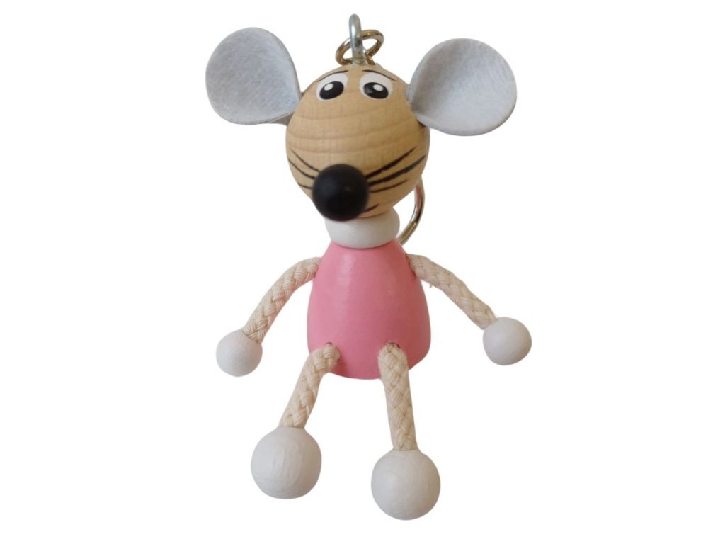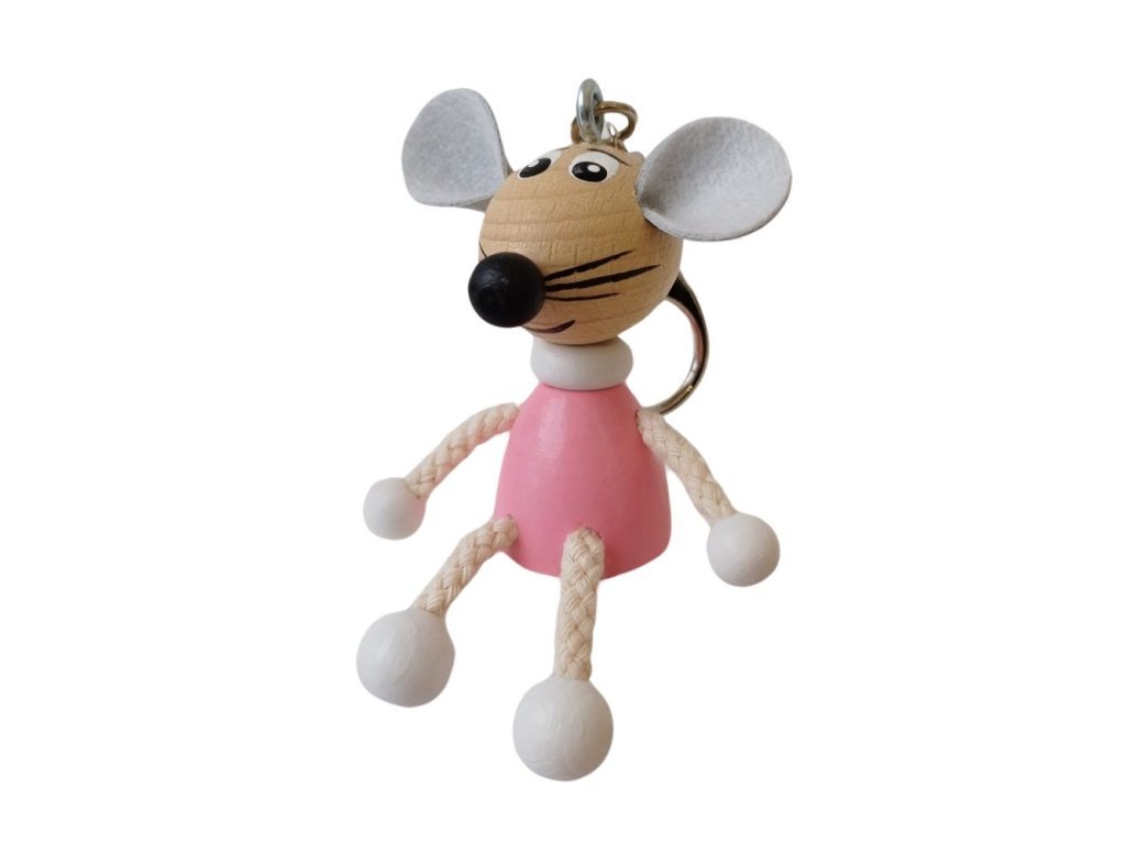 RŮŽOVÁ MYŠKA – ručně malovaná dřevěná klíčenka