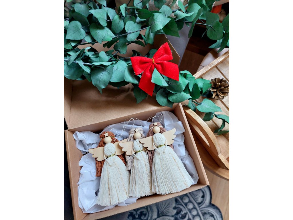 Sada obsahuje 3 kusy andělek. Každá andělka je určena k samostatnému zavěšení a dodávána v papírové krabičce.
