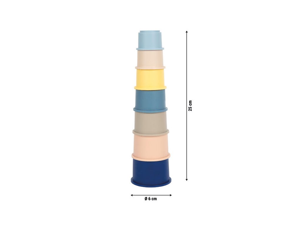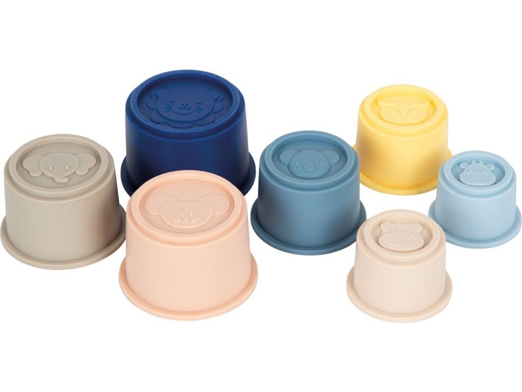 Sada sedmi silikonových nasazovacích kelímků je navržena s ohledem na potřeby nejmenších dětí. Kelímky jsou vyrobeny z kvalitního, měkkého potravinářského silikonu bez obsahu BPA, bez zápachu a bez škodlivých látek. Díky různým velikostem mohou děti kelímky skládat, nasazovat do sebe nebo stavět věže, čímž si přirozeně procvičují jemnou motoriku, koordinaci ruka-oko i vnímání tvarů a velikostí. Každý kelímek je ozdoben roztomilým zvířecím motivem. Hračka je bezpečná, pružná a bez ostrých hran, ideální do dětského pokoje, vany i na pískoviště. Snadná údržba a možnost kelímky zasunout do sebe zajišťují praktické skladování.