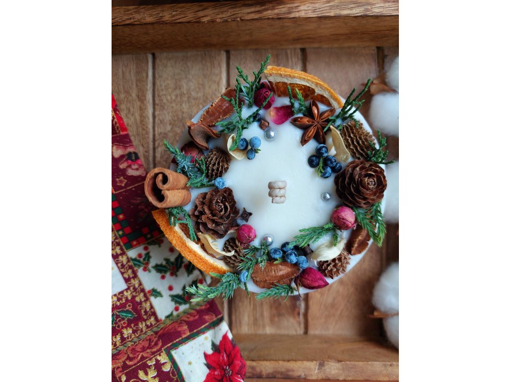 Zdobení: různé sušené přírodniny (vánoční/zimní/lesní charakter)