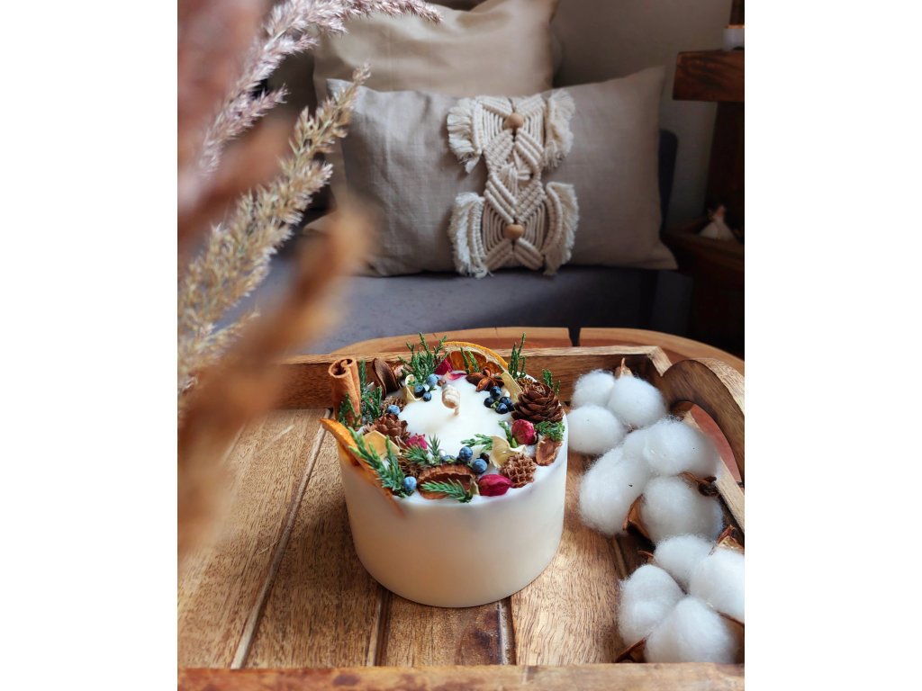 ❗Botanické zdobení má dekorativní funkci – před delším pálením případně odstraňte větší kousky blízko knotu