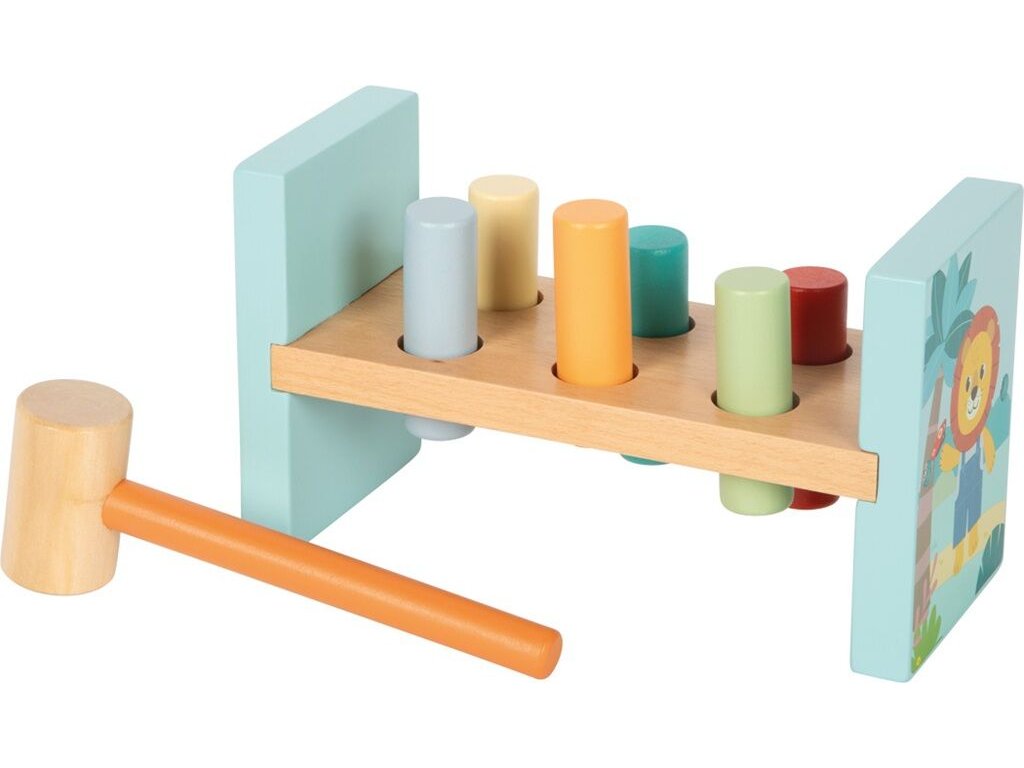 Zatloukací hračka s motivem džungle je vyrobena ze 100% FSC certifikovaného dřeva a nabízí dětem jednoduchou, ale velmi zábavnou hru. Pomocí malého kladívka děti zatloukají barevné dřevěné válečky skrz bezpečné pogumované otvory, které drží válečky pevně na místě. Jakmile jsou všechny válečky zatlučené, stačí hračku otočit a hra může začít znovu. Veselé ilustrace zvířátek podporují dětskou fantazii a chuť objevovat. Robustní provedení zajišťuje dlouhou životnost i bezpečné každodenní používání.