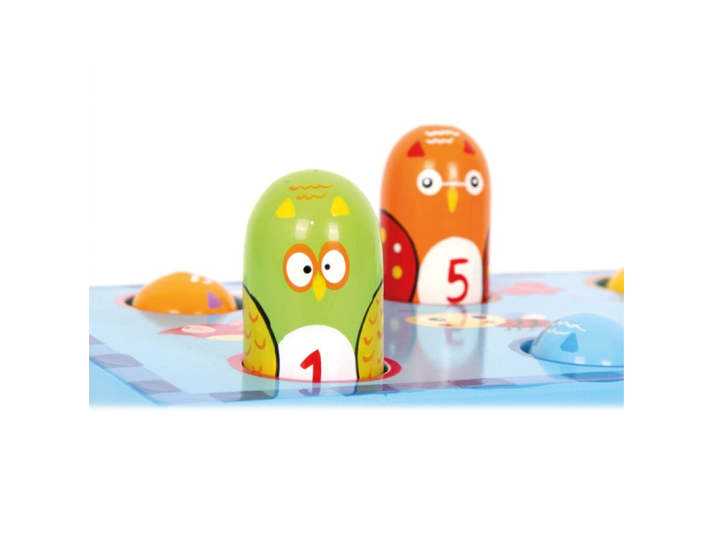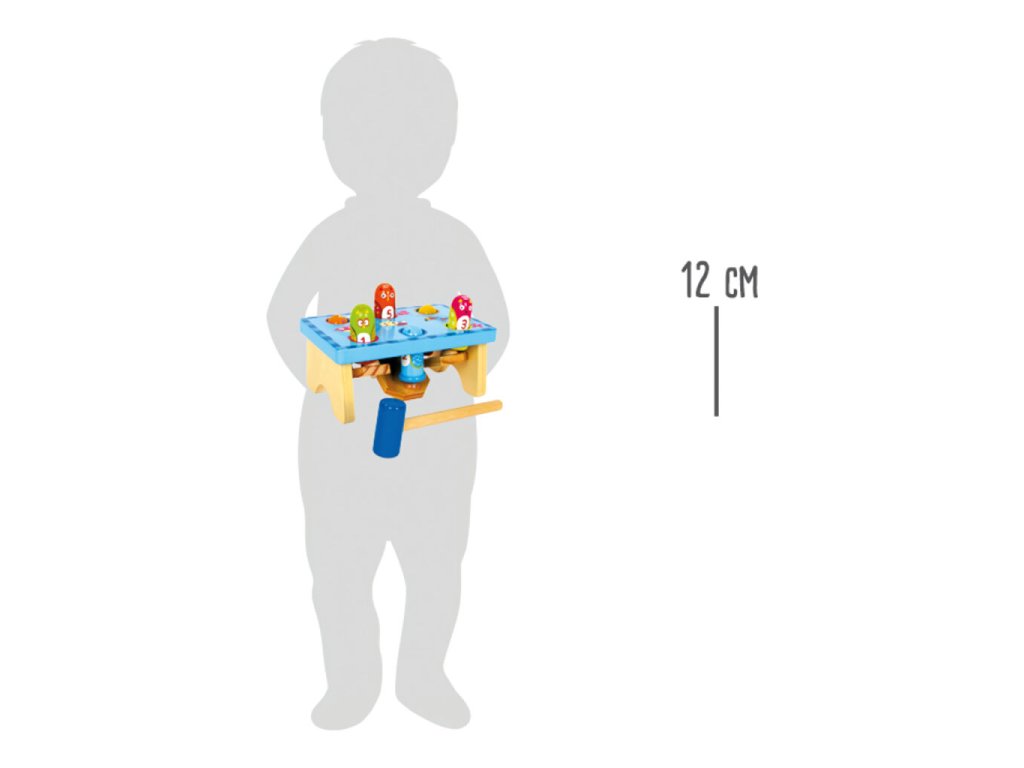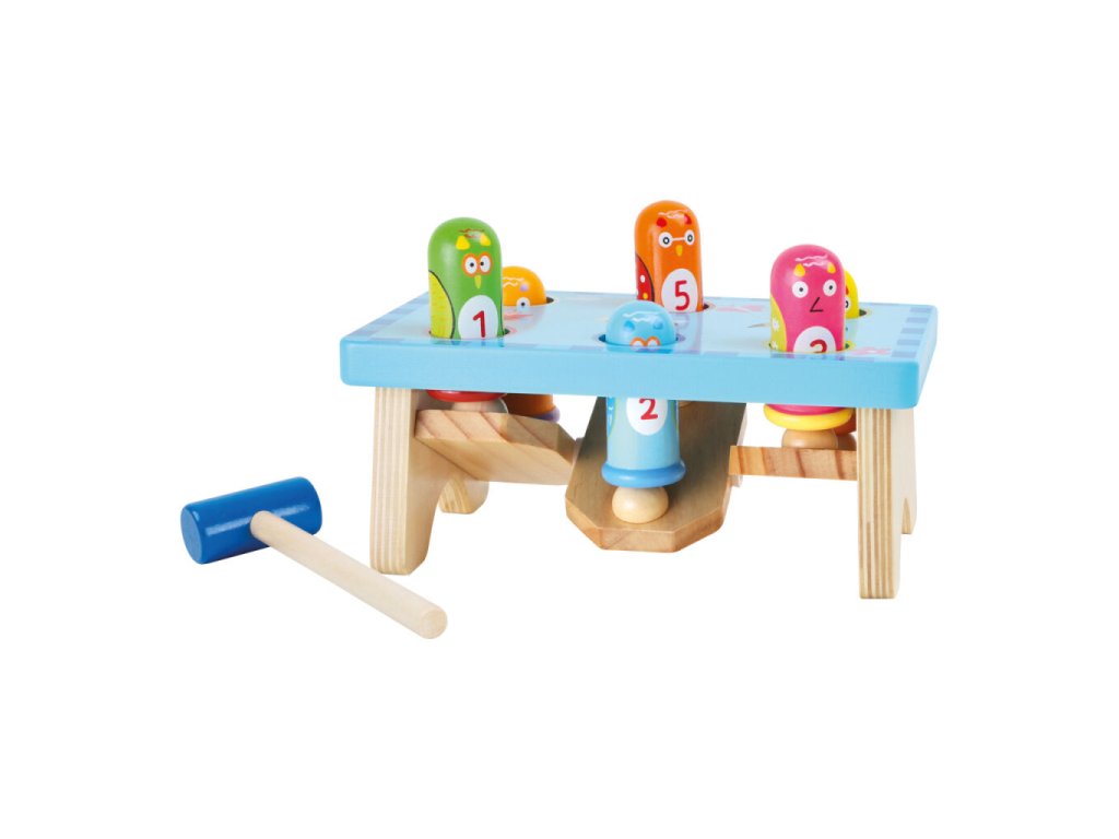 Barevná zatloukací hra je vyrobena z masivního dřeva a překližky a nabízí dětem jednoduchou, ale velmi zábavnou aktivitu. Všeteční ptáčci se na jedné straně zatloukají dolů a na druhé straně se opět objevují, což děti motivuje ke stále novému opakování hry. Při zatloukání si děti přirozeně procvičují motoriku, přesnost pohybu i koordinaci ruka–oko. Odolné dřevěné provedení zajišťuje dlouhou životnost a bezpečné používání.